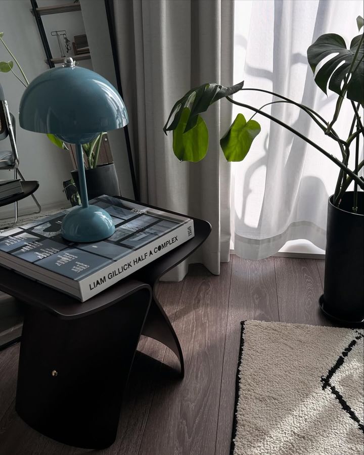 柳宗理のバタフライスツールは、フリマイベントで譲ってもらったという思い入れのあるアイテム。「このアイテムに出会ってから、お部屋づくりをもっと楽しみたいと思って、インテリアのアカウントをつくるきっかけになりました。個性的なやわらかい曲線のフォルムで、どんなお部屋にも合いそうなところもいいなと思っています。長く使い続けていきたいアイテムです」