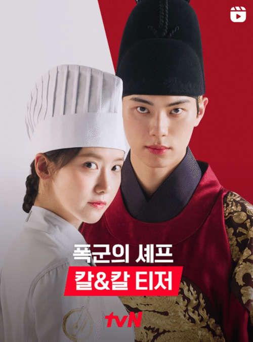 公開されたティザー映像では、純白のシェフ服に身を包んだヨン・ジヨンと、深紅の王の衣装“袞龍袍(コンリョンポ/王が執務のときに着る服)”をまとったイ・ホンのコントラストが強烈な印象を残す。