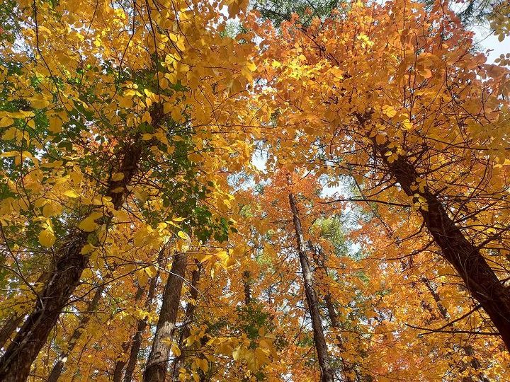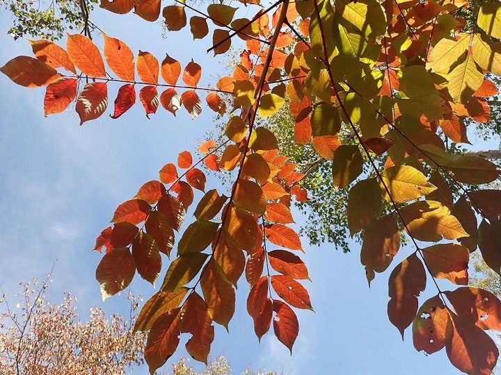 他の葉っぱがまだ緑の中、真っ赤に染まるのでとても目立ちます。滝野すずらん丘陵公園では、10月上旬に滝野の森ゾーン西エリアにある「カラマツの尾根」に行くと、カラマツに巻き付いたツタウルシの葉っぱがオレンジに染まり圧巻です!