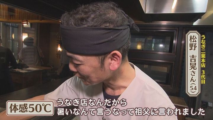 番組スタッフ:「厨房凄く暑いですね」3代目 吉晃さん:「うなぎ店なんだから、暑いなんていうなってすごい言われました」
