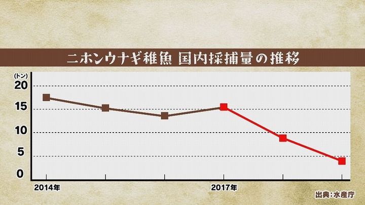10年前、うなぎの漁獲量が激減。