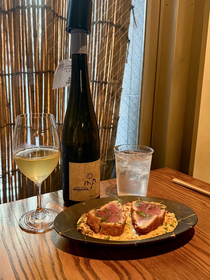 わくわくしながら一口、八ツ橋の後からレバーペーストのコクが広がり、ワインとぴったりでした✨