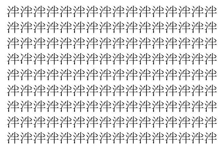 画像に並んだたくさんの「泮」という漢字。 その数144個なのですが・・・、実はその中に1つ違う漢字が紛れ込んでいます!!