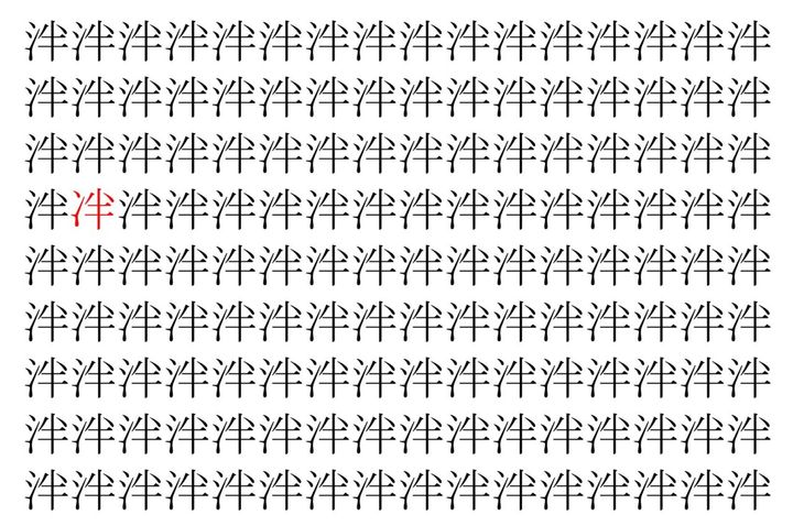 画像の中には、「泮」という漢字が縦に9行、横に16個並んでいます。 全部で144個となりますが・・・、そのうち1つは「異なる漢字」となってますよ!!