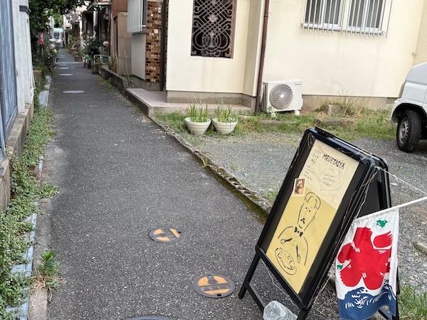 場所は福岡市中央区六本松。大濠公園を出て、右手に大濠高校のグラウンド、左手にNHK福岡放送局を見ながら通りを歩いていくと、左側に小さな立看板が見えてきます。