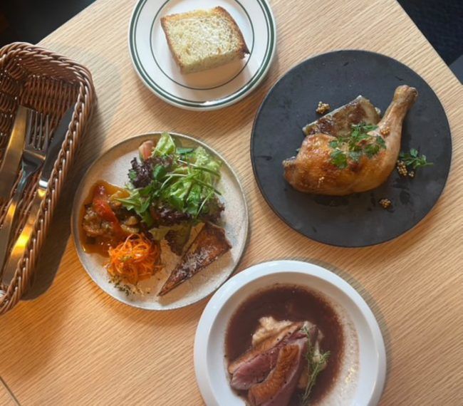 今月、堺筋本町に、〝日常をちょっとだけ素敵にするレストラン〟「meli melo」がオープン。キッシュが付いた「前菜盛り合わせ」、ジューシーな「鴨もも肉のコンフィ」、牛ほほ肉の赤ワイン煮込みとマッシュポテトで仕上げた「アッシュパルマンティエ」、豚ひき肉と鶏レバーで作った「パテ・ド・カンパーニュ」、季節のパスタやバスクチーズケーキといったスイーツなど、イタリアン・フレンチをメインとした素朴なヨーロッパ料理が楽しめます。原木をスライサーでカットした生ハムもおすすめ。料理は季節ごとに変わるため、訪れるたび新たな一皿に出会える楽しさも魅力です。