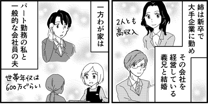 姉は新卒で給与のいい会社に就職し、その会社を経営している義兄と結婚しました。姉夫婦は2人とも高収入で、お金には困っていません。一方わが家は、私のパート収入と夫の給与を合わせた世帯年収が600万円くらいです。