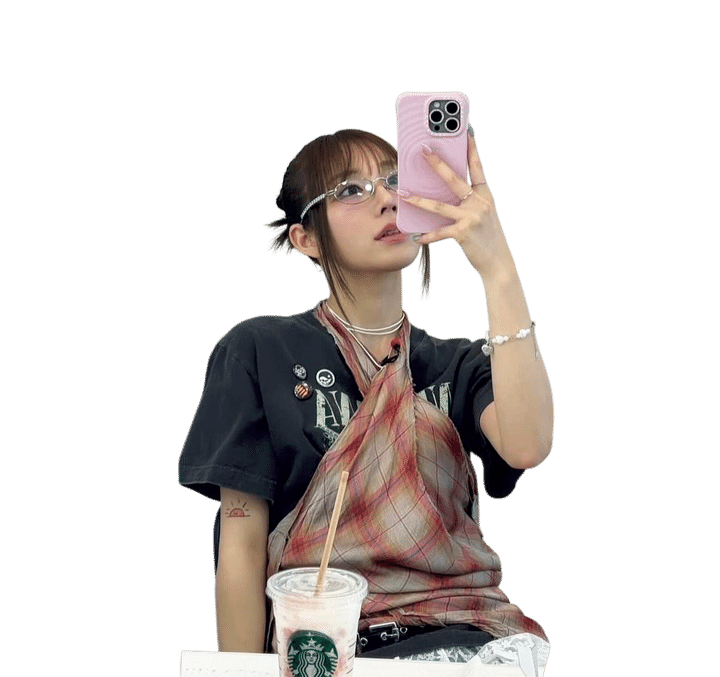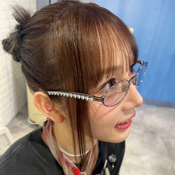 「シルバーやクリアフレームのときはチークが濃くても可愛い♡ 黒ぶちのときは眉毛を薄くしてます」