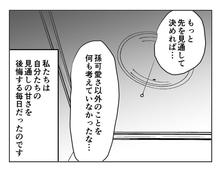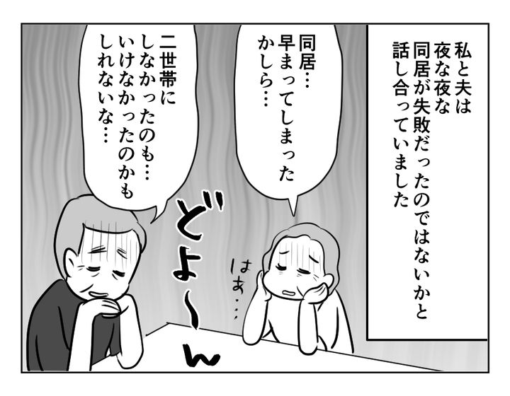 チナツさんが同居を解消したいと考え始めていたのと同時に、義両親も同居を解消したいと願っていたのです。けれど自分たちから同居を言い出した手前、解消したいだなんて言いにくい……そんな当たり前の感覚を持っていてくれたことに少しほっとしますね。まぁそう思うのであれば、子どもたちの夕食にもう少し気を遣ってくれてもよかったのでは……? ともあれ「見通しが甘かった」という後悔は、義両親もチナツさんたちも同じだったのかもしれません。