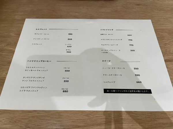自家焙煎のコーヒーは、時期によって異なる数種類のコーヒー豆から選ぶことができます。コーヒー豆の販売も行っています。 コーヒー以外にも、抹茶ラテやクリームソーダなどのソフトドリンク、カヌレやチーズケーキなどのスイーツメニューがあります。