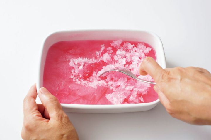 シロップと水などを凍らせて、フォークでかき混ぜるだけ! とっても簡単なので、子どもといっしょに作るのも◎です。