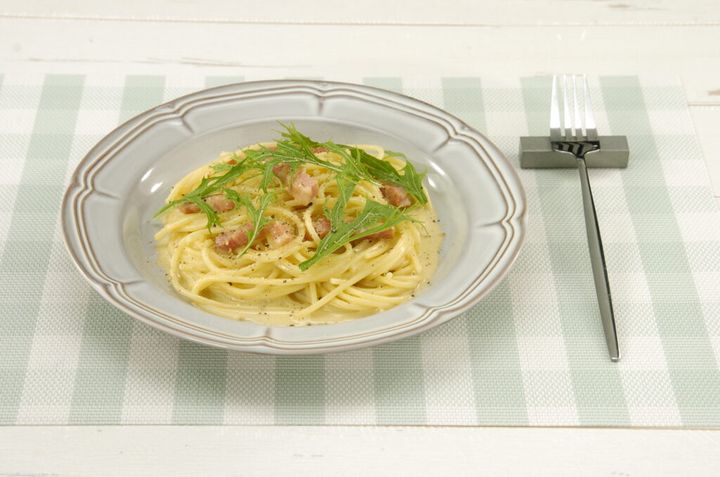この日のテーマは「どうすれば?練りごま」。カルボナーラに練りごまを加えてちょっぴり和風に仕上げたアレンジパスタ「ごまボナーラ」を辻調理師専門学校の紫藤慧先生から教わった。