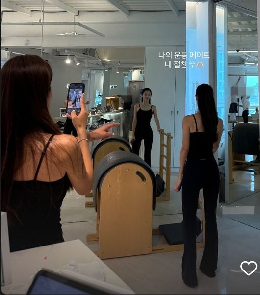 キム・ソンウンは「私の筋トレメイト、親友のスー」とコメントを添え、ピラティススタジオで共にトレーニングするパク・スジンの写真を公開した。