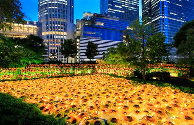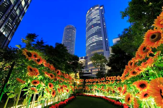 昼と夜、それぞれのひまわりの表情が楽しめるのも魅力の1つ。夜23時まで開場しているので、仕事終わりなどに訪れれば良いリフレッシュになりそうです。夜景とともに楽しむひまわりをぜひ体験してみてください。