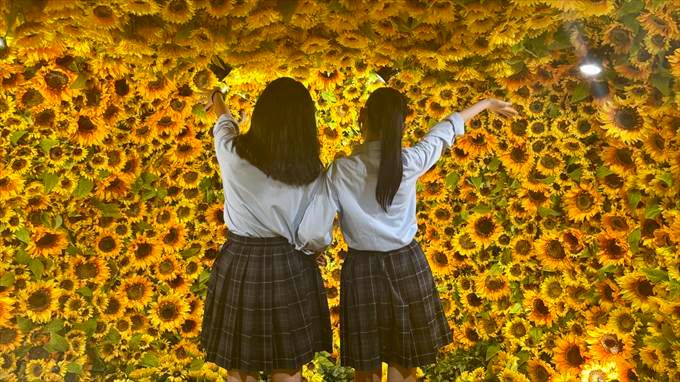 トンネル内は、上から差し込む自然光がひまわりを美しく照らしてくれるので、明るく華やかな一枚が撮れます。お友達と並んで歩く姿や、ひまわりに手を伸ばすポーズなど、自然な動きを写真に収められるのもポイント。