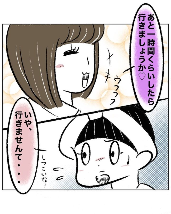 「あと一時間くらいしたら行きましょうか」と勝手に話しを進めるゆかちゃんママに困惑しつつ、「いや、行きませんて・・」と改めて断るまるさん。