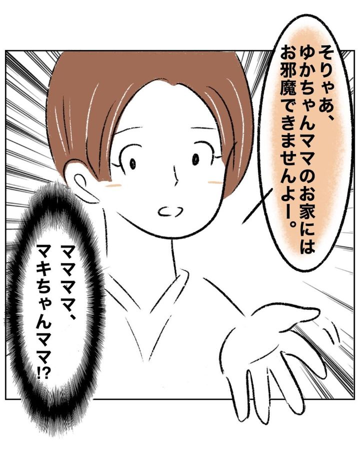 マキちゃんママの言葉に、ゆかちゃんママは「え?なんでですか?てか、あなたは呼んでませんが?」と不快感を露わにしてマキちゃんママを睨みつけました。