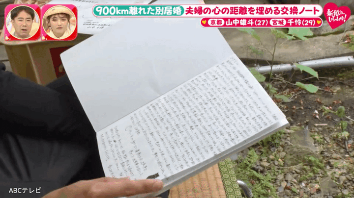 そんなふたりを繋ぐのは、なんと “交換ノート”。それぞれ、日記のように思いのまま綴るのだという。夫は、つい長文になってしまうと言うが、それを読む妻は「私を想ってこんなに書いてくれるのがすごく嬉しい」と頬を染める。