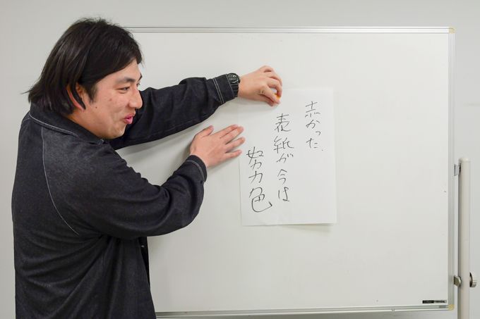 寺内:実は僕、もう一個考えているんです。全く新しい視点でいきます。【赤かった 表紙が今は 努力色】。