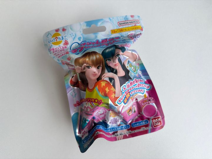 入浴剤が溶けると「オシャレまほうカード」のミニチュアチャームが2枚出てきて、