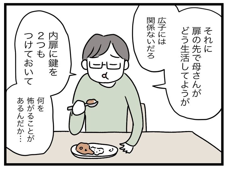 義母はつねに広子の様子を伺っているようで、ドアの近くにいると察知すると、何かしらの用を頼んだり、「ここを開けて」と言ってくるのでした。