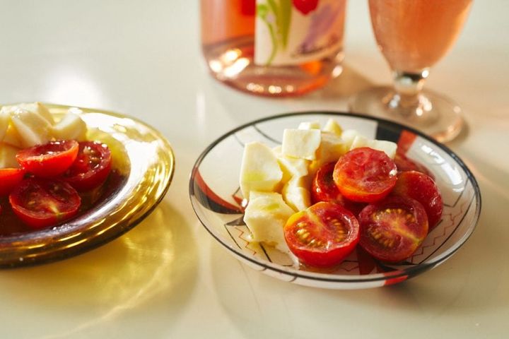 モッツァレラチーズとミニトマトを昆布締めすると、いつものカプレーゼが旨味マシマシに。