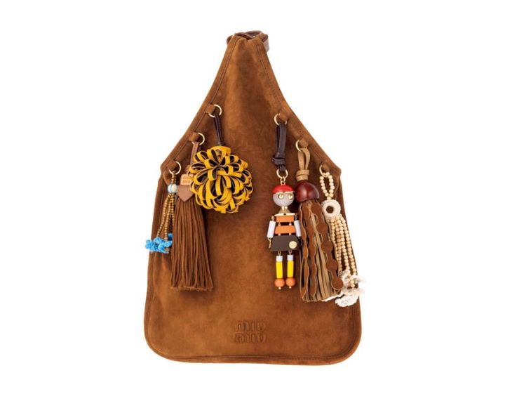 柔らかなスウェードを使用したホーボーバッグにトリックをあしらって遊び心をプラス。[H24×W37]¥704,000※予定価格(ミュウミュウ/ミュウミュウ クライアントサービス)