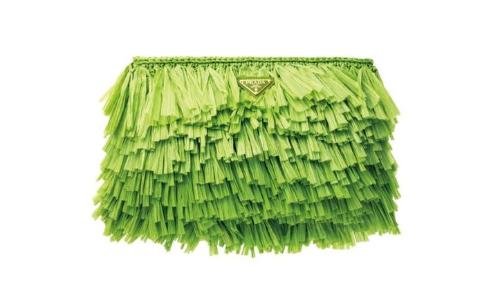 たっぷりのフリンジでおめかしした遊び心溢れるクラッチ。ショルダーストラップ付き。[H17×W30]¥412,500※予定価格(プラダ/プラダ クライアントサービス)