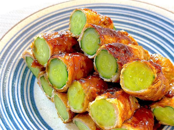 きゅうりの食感と豚肉のジューシーさが絶妙にマッチした「きゅうりの肉巻き」。