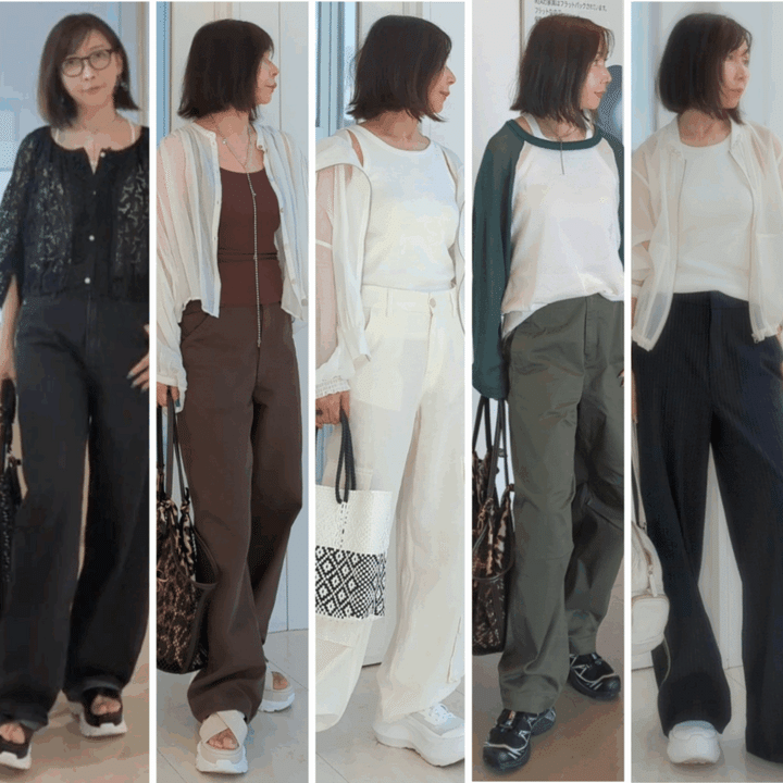 【60代ファッション】シアートップスを品よくオシャレに!「ユニクロ」見せブラトップで涼感コーデ5選