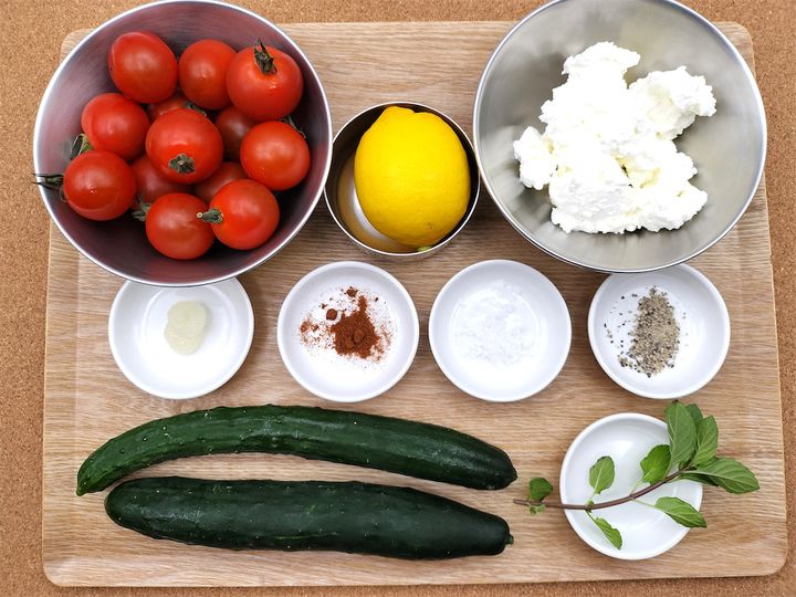 谷シェフの「トマトときゅうりのヨーグルトサラダ」の材料と作り方