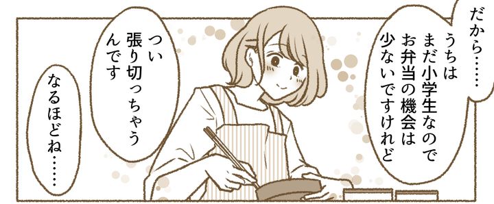 その反動のようなものなのか、ミサさんは子どものお弁当作りをつい張り切ってしまうのだそうです。ミサさんの話を聞いて、「自分のお弁当は自分で作ってね!」と一方的に息子に言うのもあまりよくない気がしてきました。
