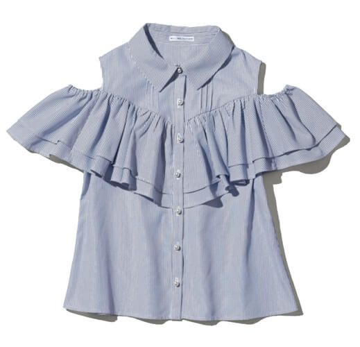 夏らしい肌見せを楽しみつつ、気になる二の腕をうまく隠せる、オフショルや肩あきデザインのトップスがおすすめ。ふんわり波打つティアード袖が二の腕を目隠し。対比で肩が華奢に見えるメリットも。