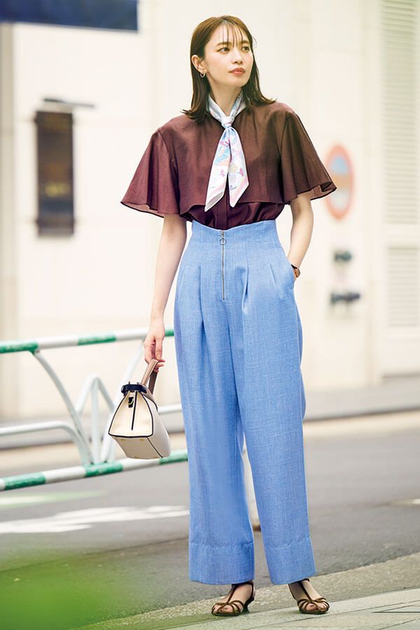パンツコーデがいつも同じになりがち…素敵ブルーを取り入れて爽やかさ&フェミニン感アップ♡