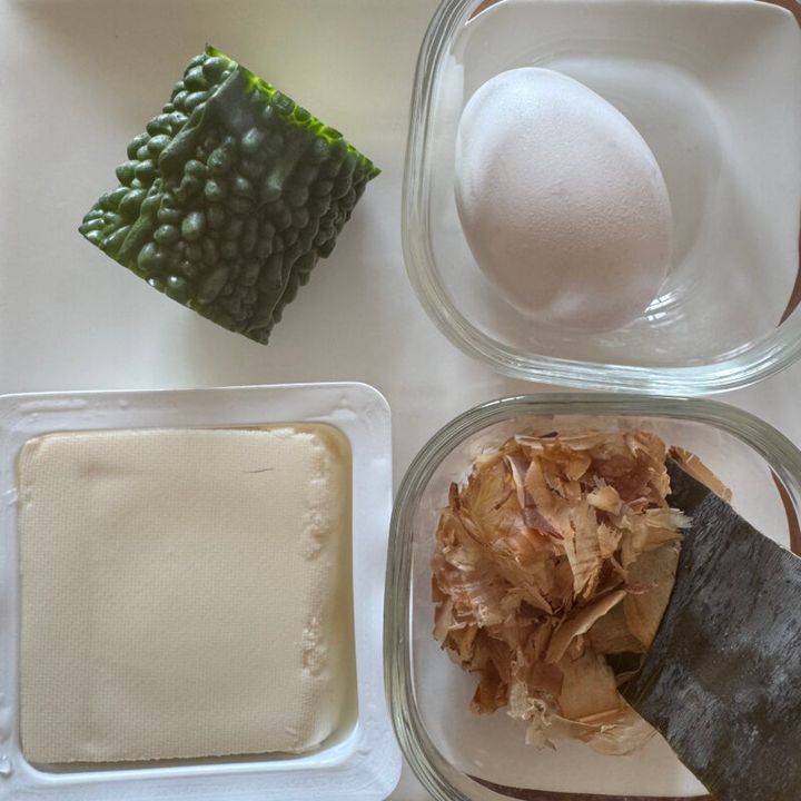 ゴーヤはビタミンCがとても豊富で、紫外線から肌のダメージを防いでくれます。ゴーヤの苦味成分「モモルデシン」には血糖値を下げる効果があり、糖の代謝を促進してくれる作用があります。卵は栄養価の高い食材で、卵のたんぱく質は質が良く、疲労の回復や筋肉の修復に効果的です。豆腐には大豆イソフラボンが含まれており、ホルモンバランスを整えてくれる役割があります。みそ汁は朝いただくことで、熱中症予防にもなります。