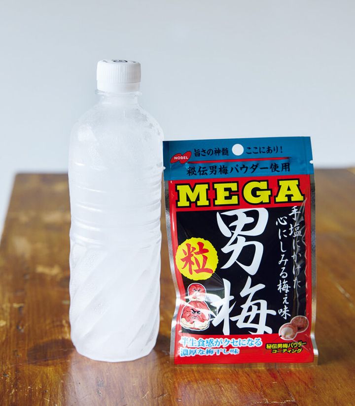 塩分補給にはノーベル製菓の「メガ男梅粒」がおすすめ。塩分がしっかり摂れるので、体を動かして汗をかいた後に。