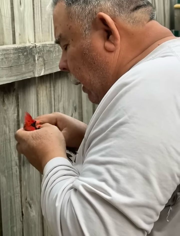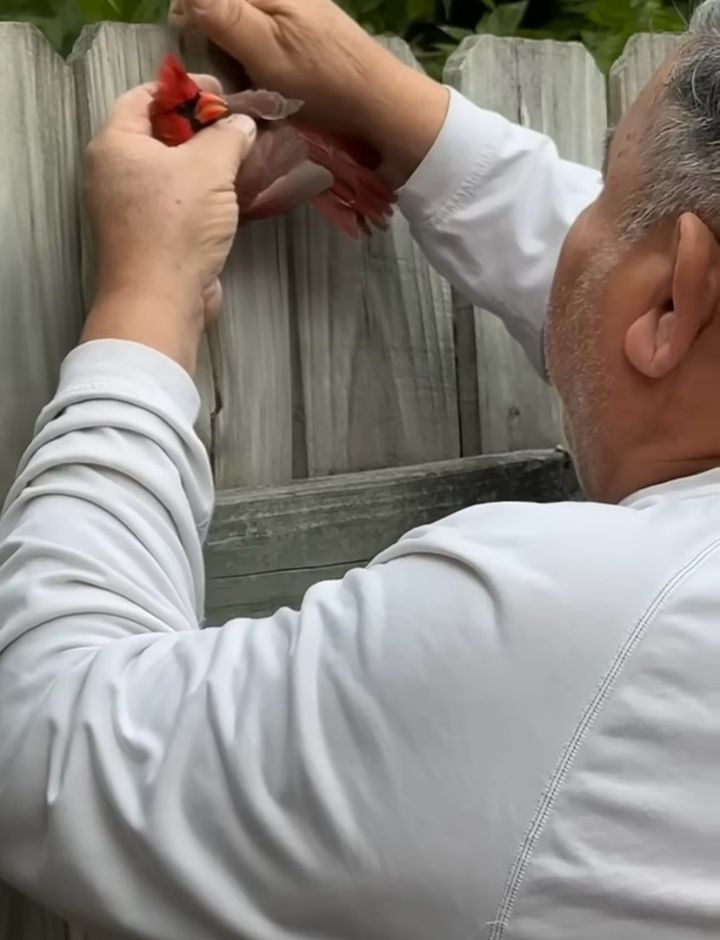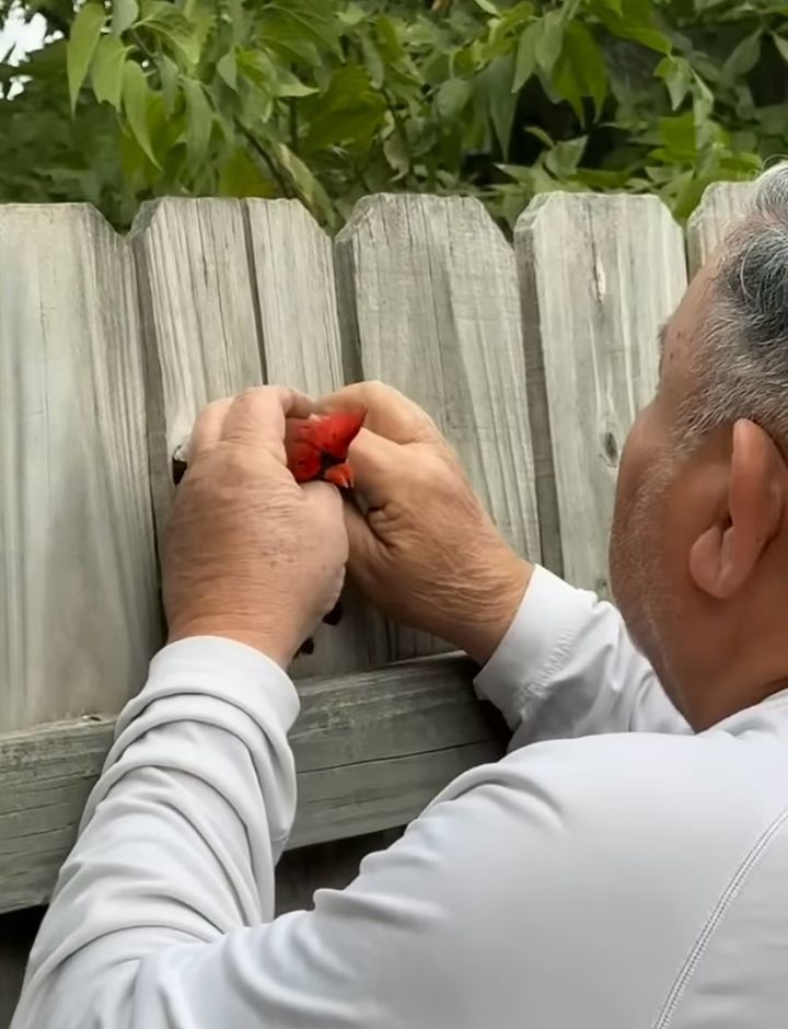 フェンスの板に挟まって身動きが取れなくなってしまっていた鳥。 そんなピンチに陥っていたところに手を差し伸べてくれたのは、心優しい退役軍人の男性でした。