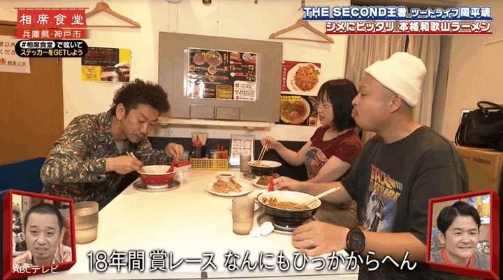 バラエティ番組『相席食堂』(ABCテレビ)に、結成16年以上の漫才師たちによる賞レース『THE SECOND~漫才トーナメント~2025』の王者が登場! 王者が18年もの苦しい時代を乗り越えられたのは「面白い兄さん」と彼らが尊敬する、あの有名コンビのおかげだった。