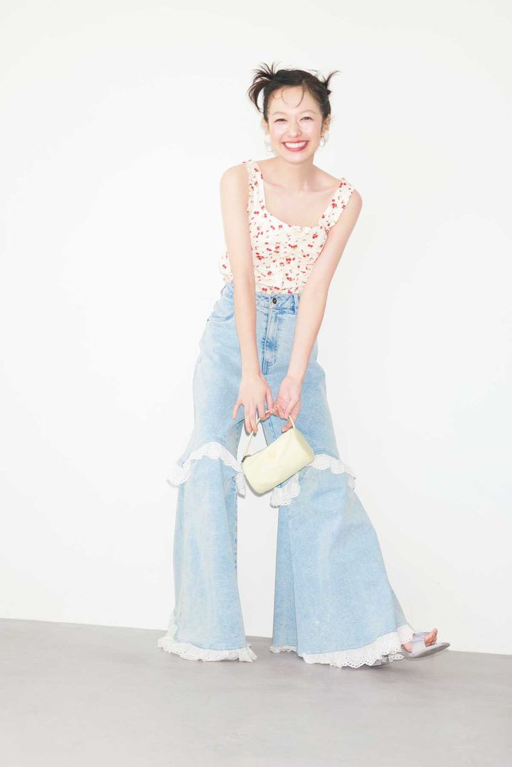 3. スタイルアップできる服が知りたい♡ 夏ボディを魅力的に見せる【お花トップス×ガーリーワイドデニム】