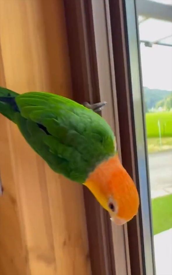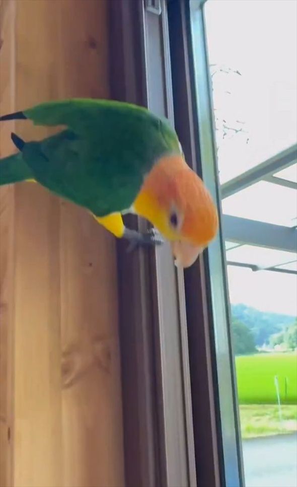 愛らしい見た目と仕草で人気のインコ。 そんなインコが窓のサッシにつかまり滑り降りる、驚きのシーンが反響を呼んでいます!