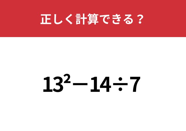 「13^2−14÷7」正しく計算できる?