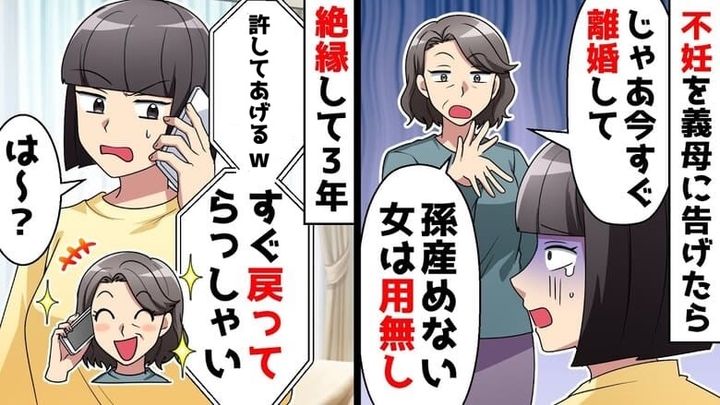 「孫を産めない?離婚!」不妊を告白すると義母が豹変し絶縁。3年後…戻ってこい?義母が土下座!絶望のワケ♡