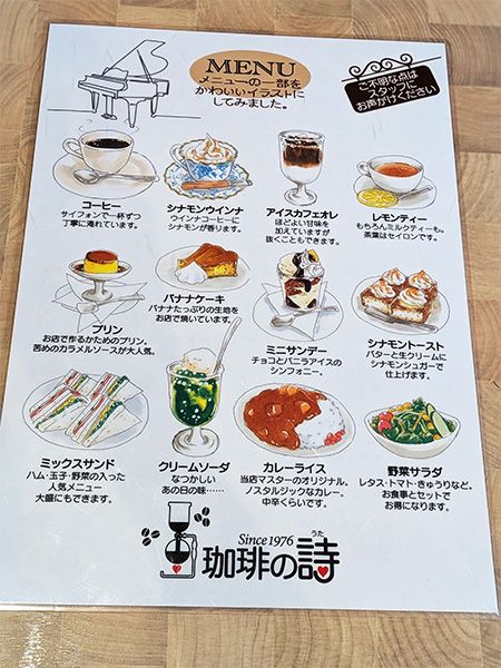 サイフォンのイラストが目を引く看板が目印。「詩」のハートに遊び心を感じます