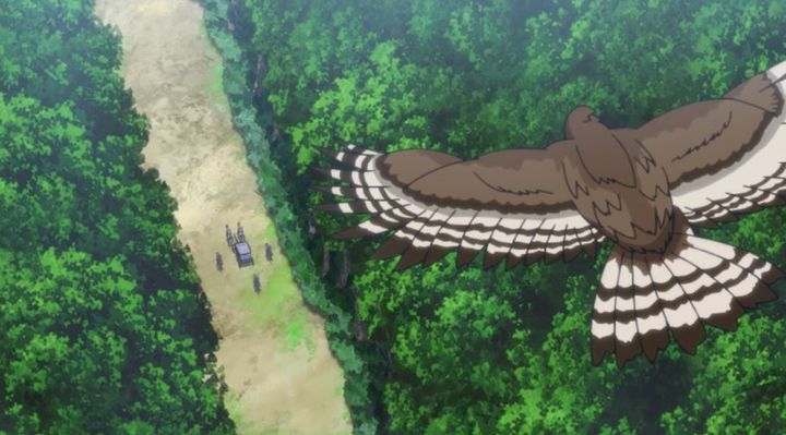 鷹の姿になり、まさにドローンのように王女の馬車を追跡!