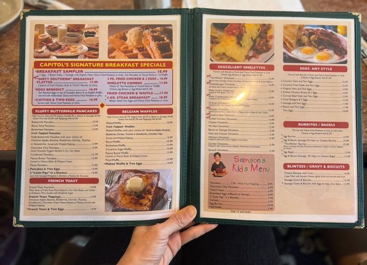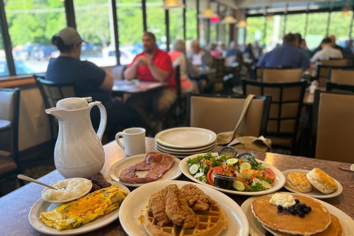 定番のバターミルクパンケーキもワッフルもチキンも。オムレツやサラダだって食べたい…! こんなわがままなカスタマイズを叶えられるのも、メニュー豊富な「キャピタルパンケーキハウス」ならでは。最高にハッピーなモーニングでした♡