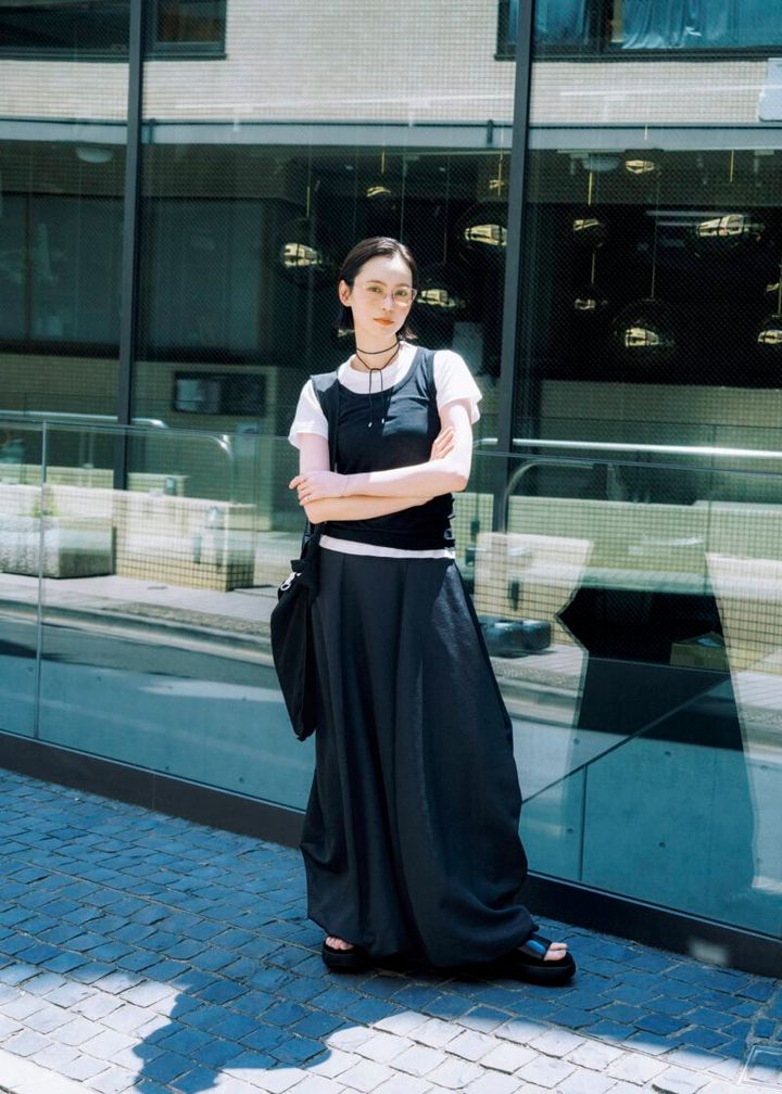 【私服スナップ】比留川游のモノトーン夏コーデに学ぶ「Tシャツ×タンク」大人の品格レイヤード術