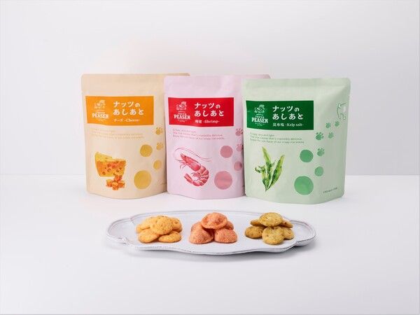ピーセンと同じお米生地を使いながら、ふわっと軽い食感が楽しい「ナッツのあしあと」も新登場(各648円)。