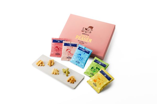 「東京の味めぐり」がテーマのピーセンは、東京を代表する老舗とのコラボで、バラエティ豊かな味わいに(全5種類、各1,080円)。