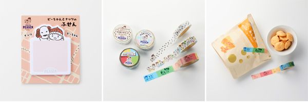 ブランドマスコットのピーちゃんとナッツがひょっこり顔出す付箋や、ふたりの仲良しな姿にほっこり…なマスキングテープは3種類のデザインがあります(各495円)。