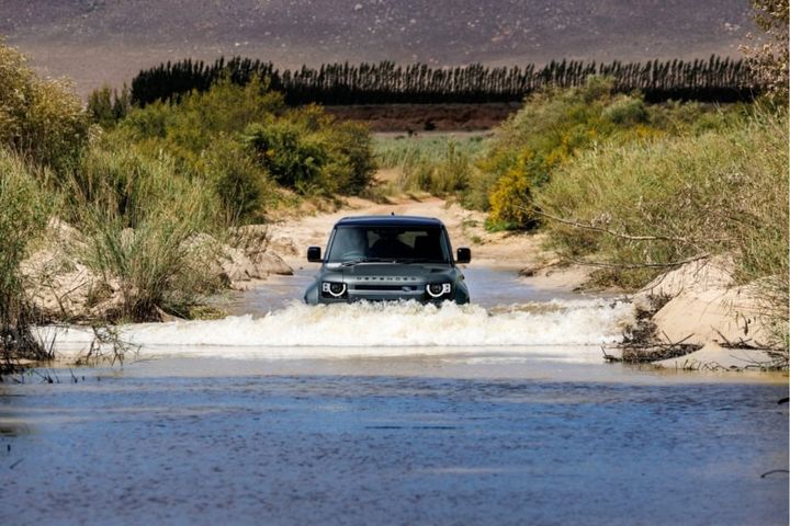 そして車高も28ミリ高くなっています。浅瀬の川や砂浜も走行可能。通常モデルは最大渡河水深が90センチですが「ディフェンダー オクタ」は1メートル。先日の大雨で、水はけの悪い代々木公園脇を走っていた際、軽自動車が水没して動かなくなってしまっているのを見かけました。この車ならそんな心配も無用。ここ数年日本で多くなっているゲリラ豪雨や水害時にも安心感がある車です。